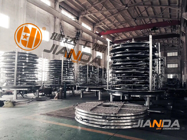 我司盤(pán)式干燥機(jī)具有調(diào)控容易、適用性強(qiáng)、操作簡(jiǎn)便、可回收溶劑、粉塵排放符合要求、安裝方便、占地面積小等特點(diǎn)。其中每層干燥盤(pán)皆可單獨(dú)通過(guò)入熱介質(zhì)或冷介質(zhì)、對(duì)物料進(jìn)行加熱或冷卻,物料溫度控制準(zhǔn)確、容易;且物料的流向單一、無(wú)返混現(xiàn)象,干燥均勻、質(zhì)量穩(wěn)定、不需要再混合。